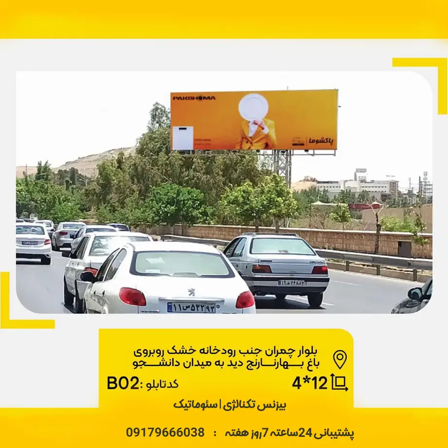 اگر به دنبال یک موقعیت استراتژیک، و کاملاً هدفمند برای تبلیغات محیطی در شیراز هستید، بیلبورد بلوار چمران بعد از میدان دانشجو که روبه روی باغ بهارنارنج ونزدیکی دانشگاه شیراز است، بیشک یکی از بهترین موقعیت های مکانی برای شماست. این بیلبورد بعد از میدان دانشجو با قرارگیری در یکی از پرترددترین مسیرهای شهر، در معرض دید هزاران نفر قرار دارد و فرصتی ایدهآل برای برندهایی است که به دنبال افزایش دیدهشدن، جذب مشتری و رشد فروش هستند .
